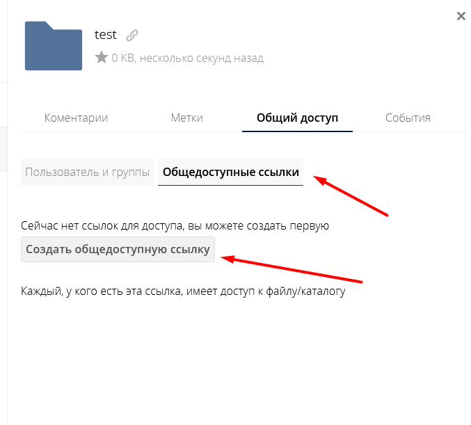 В этом руководстве показано, как создать каталог в файловом менеджере и поделиться им по публичной ссылке.