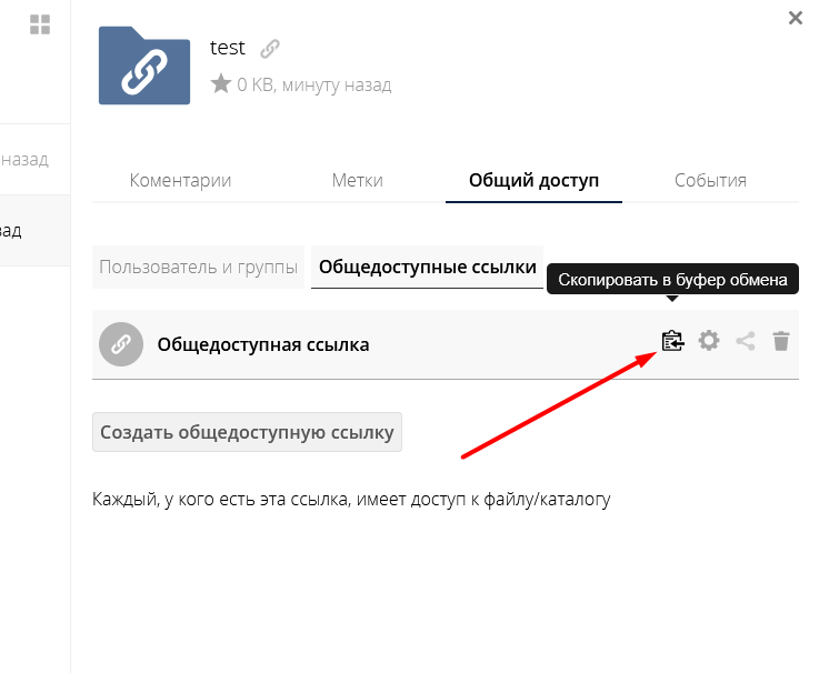 После создания ссылки нажмите на иконку копирования — ссылка будет сохранена в буфер обмена.